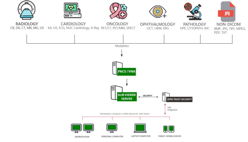 ALM DICOM Viewer Hybrid Model is a PACS viewer for medical images, designed to deliver a unique experience. With its intuitive interface and unmatched performance, It will be your go-to choice every time. No device restrictions, you can access the Viewer on any device, any time, anywhere. Our software integrates Zero Trust Security, ensuring that every user and device is continuously authenticated and authorized. This advanced security model minimizes risks by enforcing strict access controls, providing robust protection against unauthorized access.